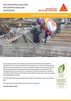 Sika - EPDs - Sika's product portfolio includes concrete admixtures, roofing and flooring systems, adhesives and sealants, waterproofing solutions, mortar products, and solutions for engineered refurbishment and the industrial sector.