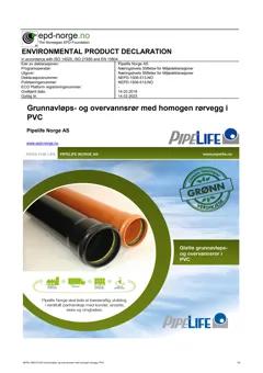 EPD Grunnavløps- og overvannsrør med homogen rørvegg i PVC Pipelife Norge AS